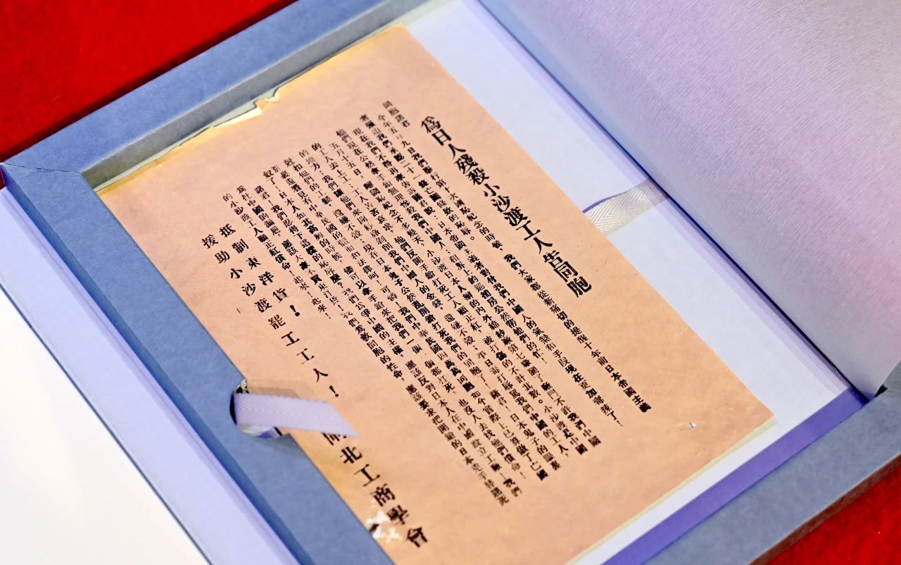 参木穷老师还展示了龙华烈士陵园中的珍贵文物,一张顾正红烈士被残忍杀害后闸北工商协会的告同胞书。