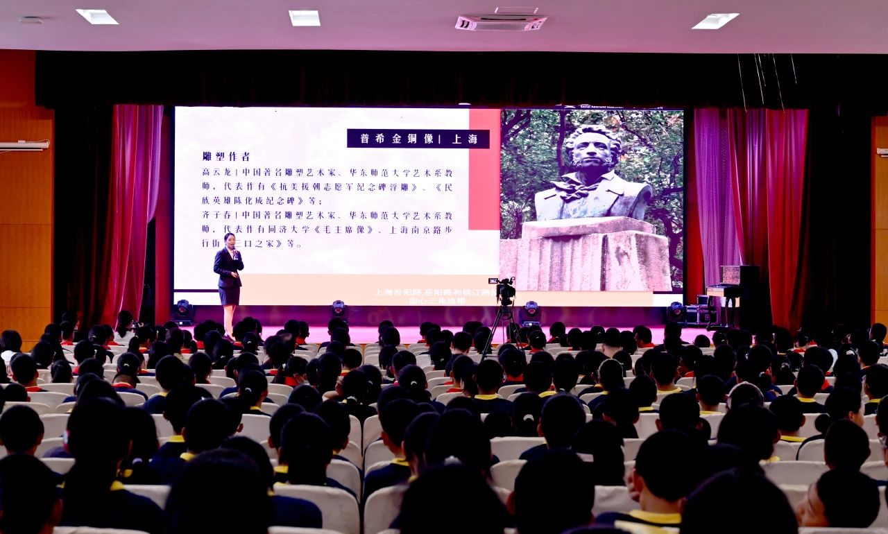 她从雕塑艺术角度解析了上海市龙华烈士陵园中的经典红色雕塑,让学生们从生活中主动发现、观察、欣赏红色雕塑,进一步体会雕塑中蕴涵的中共革命历史与红色文化精神,引导学生真正把爱国主义根植于心灵深处。