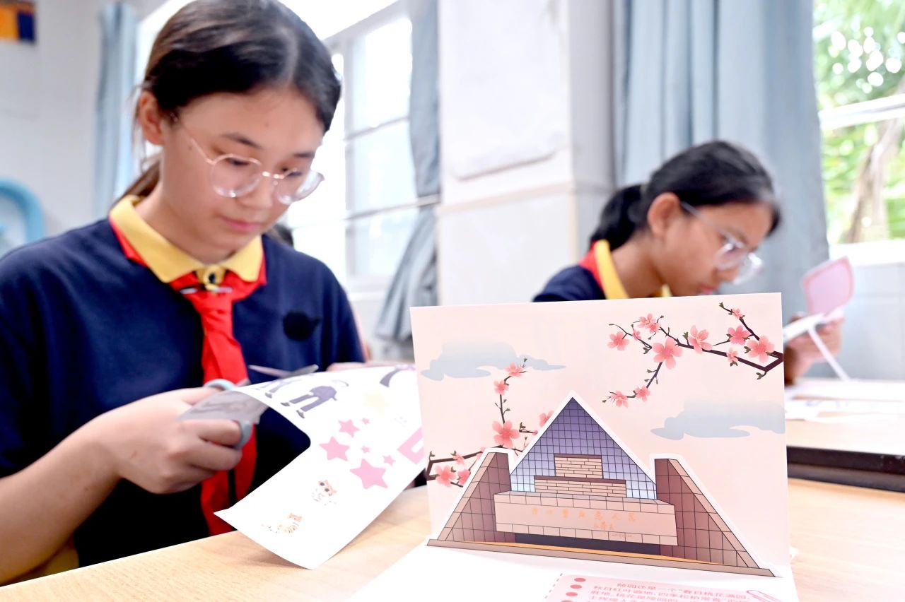 随着活动的深入,“龙华魂”研学思政课堂——主题红色手账制作活动将现场气氛推向了高潮。学生们在老师的指导下,结合刚刚学到的红色知识,发挥创意,亲手制作红色手账。每一页手账都凝聚着学生们对历史的沉思和对未来的憧憬,他们在动手实践中进一步加深了对红色文化的理解和感悟。