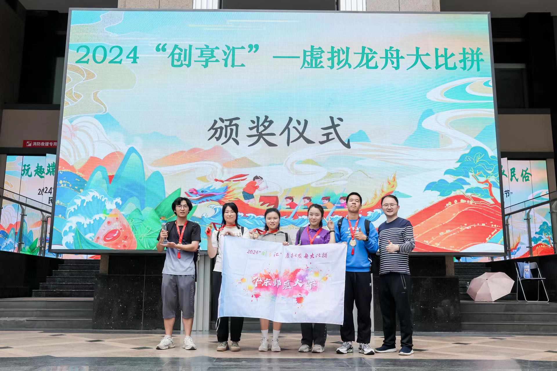 在虚拟龙舟大比拼的活动环节,主办方通过将中国端午传统习俗中的龙舟与虚拟体育技术相结合,使得体验者可在虚拟的黄浦江赛道上展开龙舟竞技比拼,与对手同场竞技。活动通过“科技+体育”的方式,在青年大学生们在心中根植运动“种子”,感受科技与传统体育的完美融合,展示了青年人的活力与朝气。来自于华东师范大学、东华大学、上海体育大学和上海行健职业学院的大学生队伍分别获得最佳实力奖、最佳表现奖、最佳拼搏奖和最佳风采奖。