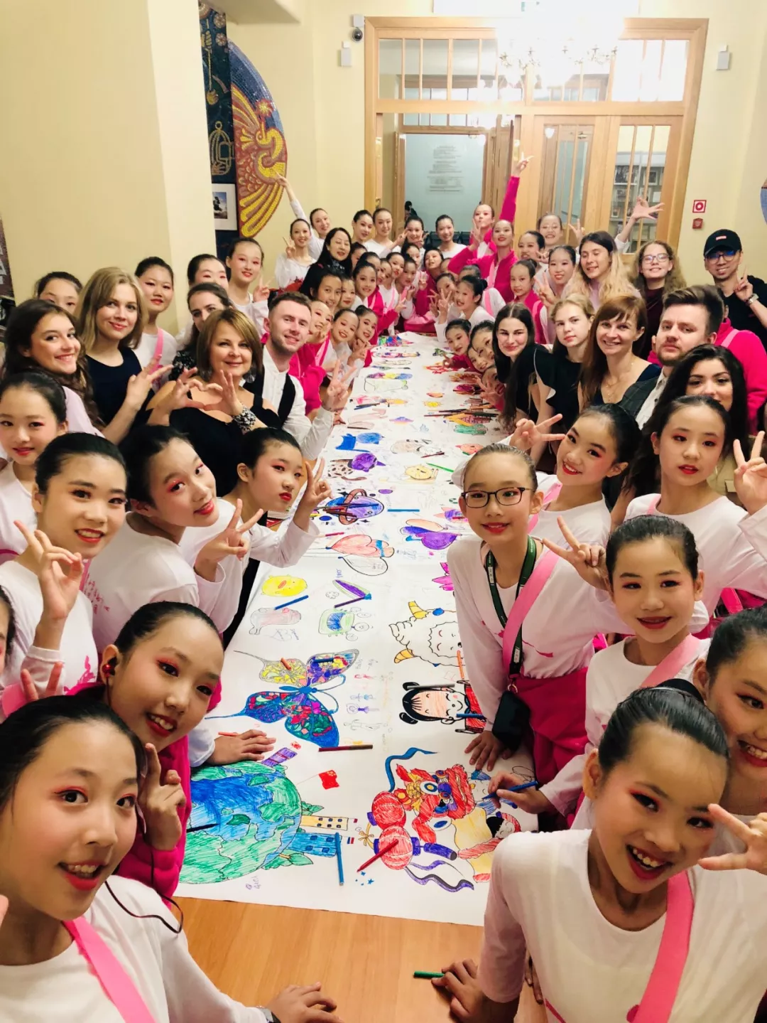 演出结束后中俄双方的小演员们共同携手绘制了长幅画卷,并合影留念,谱写中俄友谊新篇章!稚嫩的双手紧握在一起,友谊的种子撒播在幼小的心灵中,留下彼此间最美好、最珍贵、最具意义的回忆!